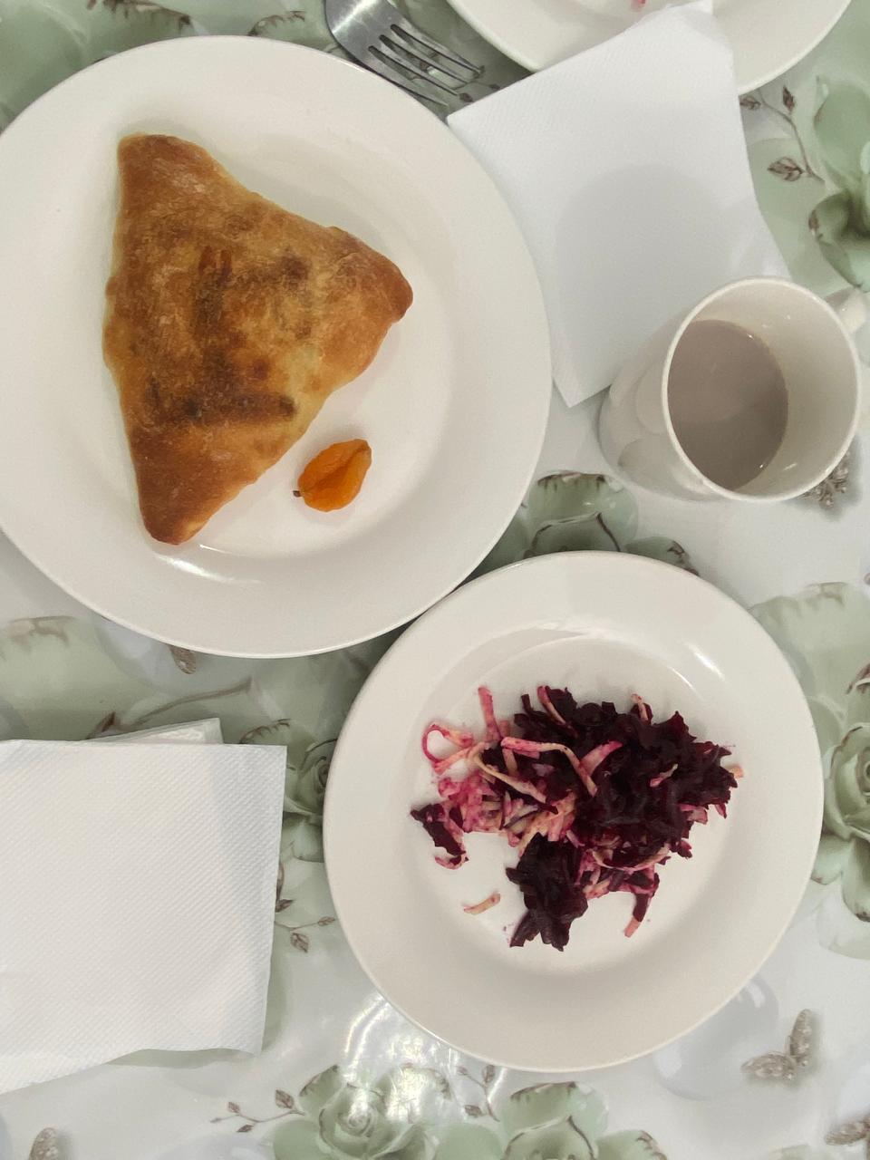 | Сәрсенбі | Салат «Қызылша мен сыр» Учпучмак тауық етімен Какао Кептірілген өрік | 60г 100г 200г 10г |